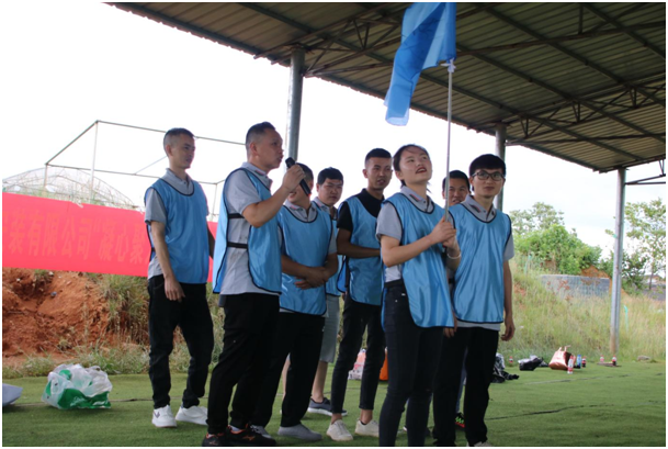 当日上午9时许,公司全员到达目前地,随着教练们的指挥,大伙迅速集合领换服装,并迅速地分成了4个队伍,选队长,起队名,想口号,排队形,一起顺利完成分队任务。